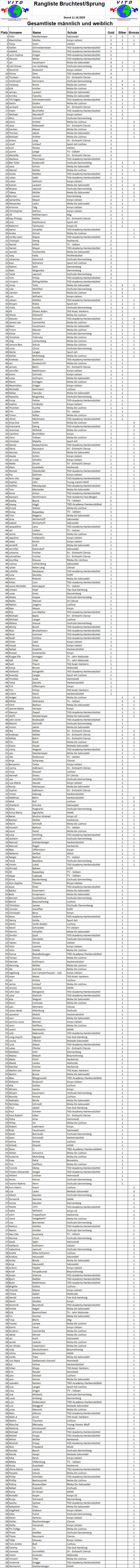 Bruchtest + Sprung, Ewige Liste - Gesamtliste